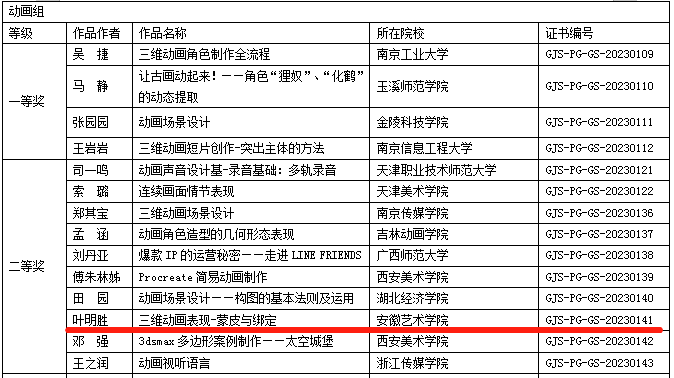 近日,第六届全国数字创意教学技能大赛颁奖典礼在青岛世博华创国际产教融合园圆满落幕。在与来自全国各高校选手的激烈比拼中,设计学院凭借创新的教学方法与手段、突出的教学效果以及显著的教学成果在本次大赛中取得优异成绩。叶明胜参赛课程《三维动画表现——蒙皮与绑定》获动画组全国二等奖,张竞羚参赛课程《设计基础》获视觉传达组全国二等奖。