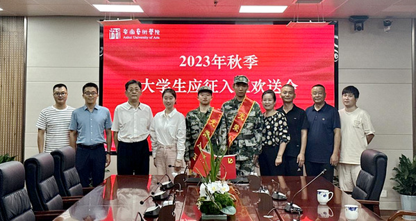 9月6日上午,我校在综合楼716会议室举行2023年秋季大学生应征入伍欢送会。行政负责人沈端良出席欢送会。
