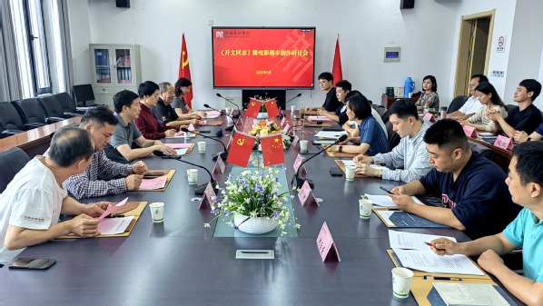 戏剧学院副院长张静主持座谈会,对《开文同志》微电影的创作情况和后期计划作简要汇报。戏剧学院青年教师葛笑林介绍剧本的基本情况。与会人员就剧本的剧情和后期摄制提出可行性建议。