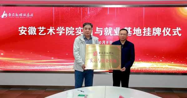 10月8日上午,乐动网官网实习与就业基地挂牌仪式在安徽新媒体集团举行,校党委委员、副校长柳友荣与安徽新媒体集团党委书记、董事长、总经理章理中为基地授牌。