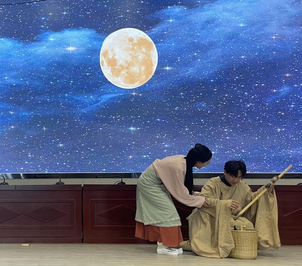 戏剧学院宣讲同学将《思想道德与法治》课程内容和万户飞天故事结合起来。结尾处,主讲人与“万户”在时空穿越中对话,向同学们发出“吾辈当自强”的号召。传媒学院宣讲同学把主题朗诵融入思政课教学中,以经典诵读为主线进行讲解。当台上宣讲的同学慷慨激昂地朗诵着《水调歌头·重上井冈山》时,观众们纷纷举着手机拍照录像,记录下这一幕。