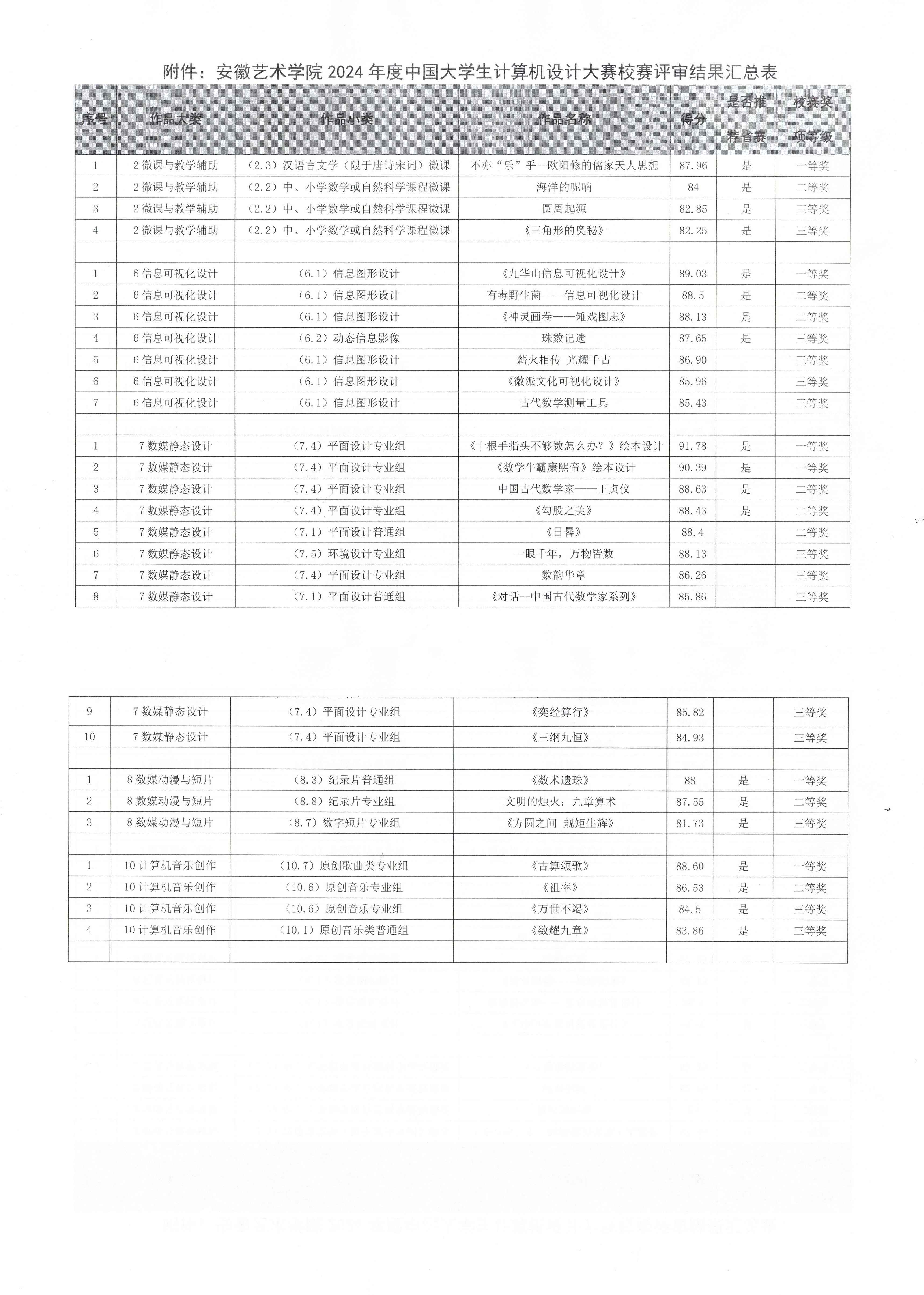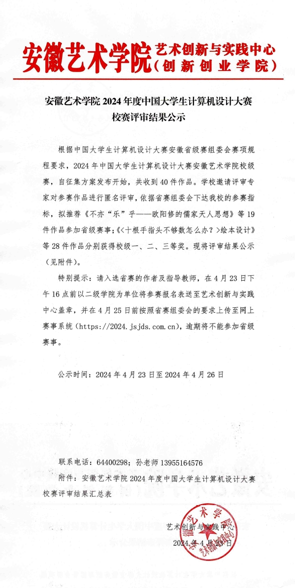 乐动网官网2024年度中国大学生计算机设计大赛校赛评审结果公示