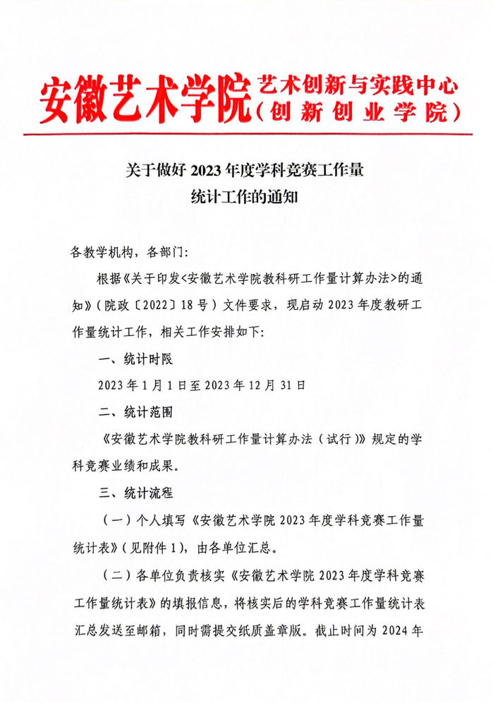 关于做好2023年度学科竞赛工作量统计工作的通知