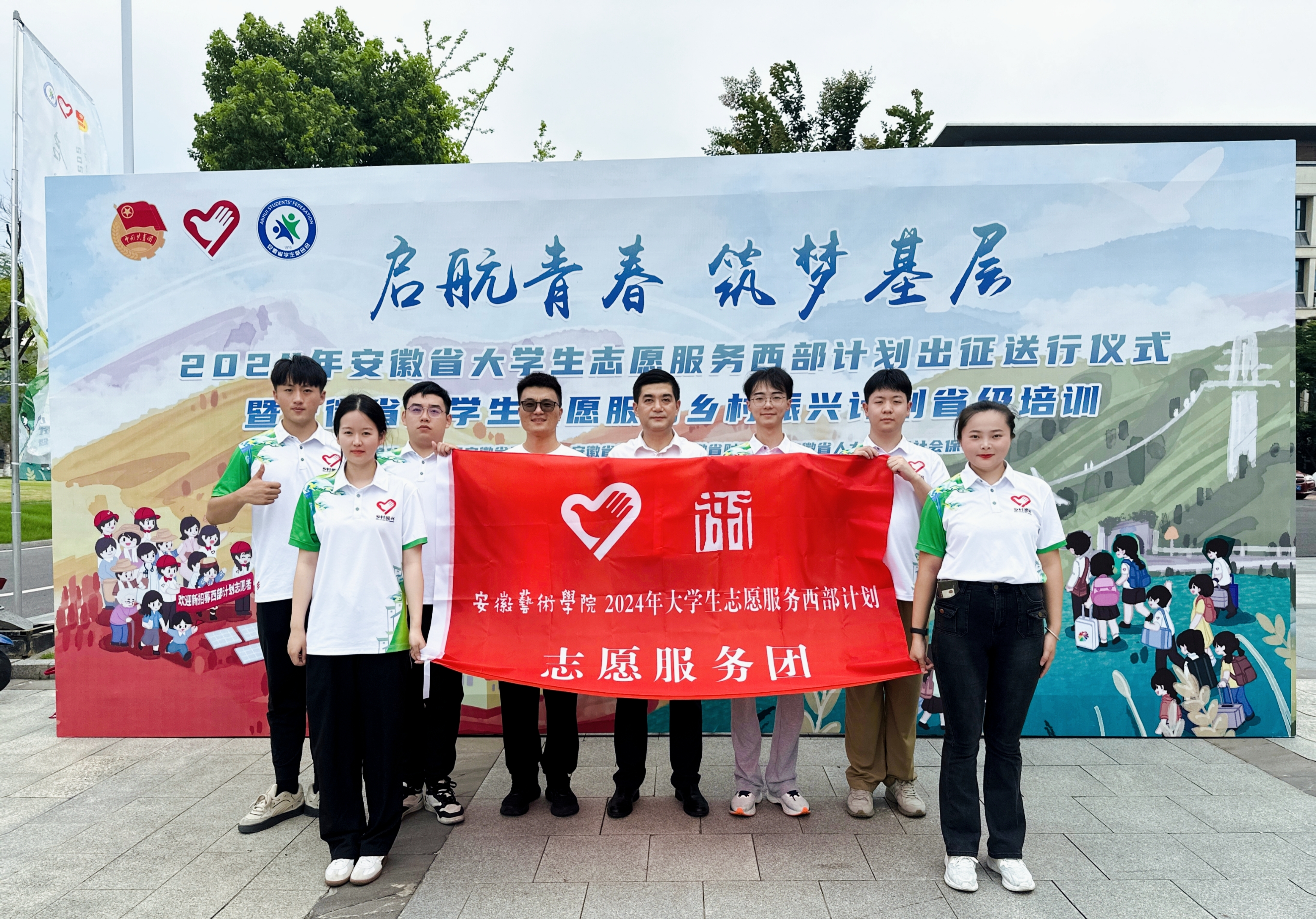 7月20日上午,2024年安徽省大学生志愿服务西部计划暨安徽省大学生志愿服务乡村振兴计划出征送行仪式在安徽中医药大学举行,我校西部计划志愿者参加出征送行仪式。