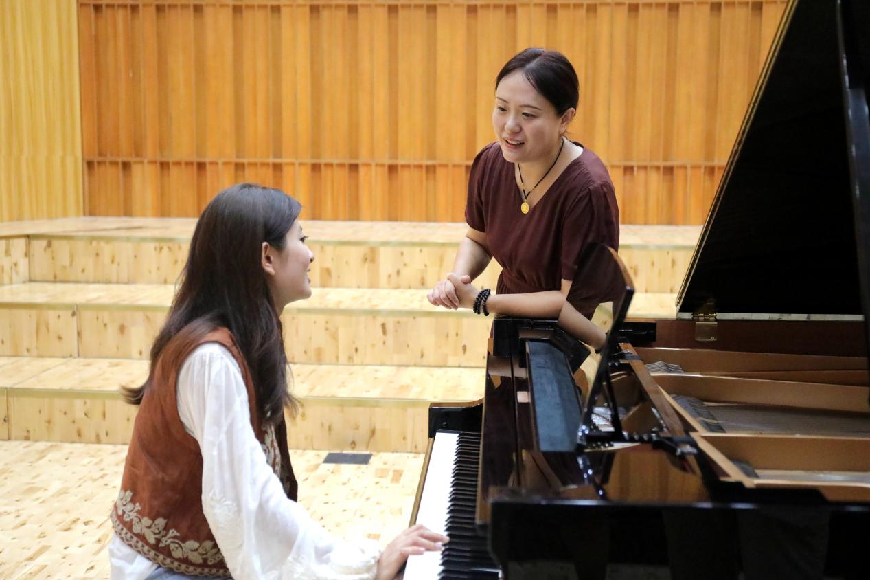 为了让我感受学院的氛围,老师邀请我现场表演。我略带紧张地在音乐厅弹奏了两首较为熟悉的曲目。钢琴教研室副主任杨扬老师听了我的弹奏后对我说,“你的基础还是挺不错的,学院的每一位老师都会帮助你的,加油!”