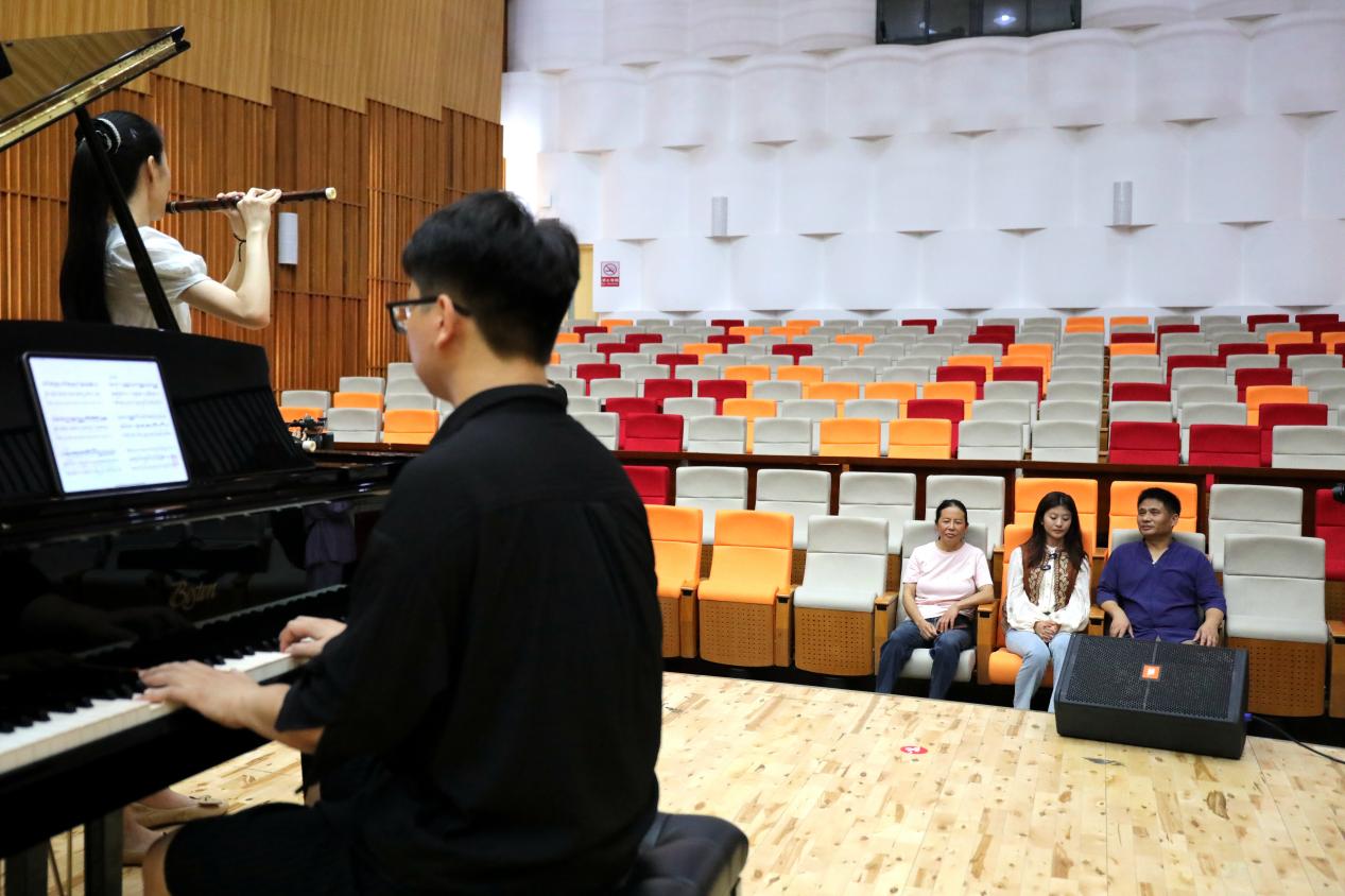 行至音乐南楼音乐厅,远远地就听到悠扬的音乐之声。原来,音乐学院参加第八届全国青少年民族器乐教育教学成果展示活动入围终评选手正在演练竹笛协奏曲《鹰之恋》。