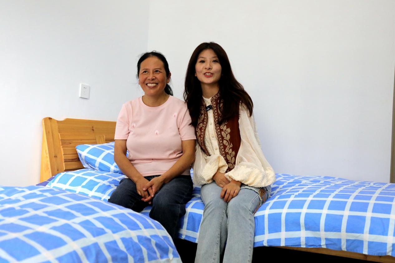 还让我特别感动的就是,因为我的眼睛看不见,学校不仅为我安排了一间无障碍宿舍,让妈妈陪读,还为妈妈安排了公益岗位,方便我俩的生活。