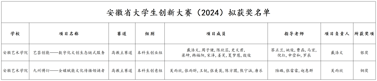 近日,安徽省大学生创新大赛(2024)拟获奖名单公示,我校荣获一银一铜的好成绩。