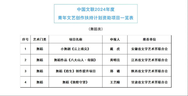 近日,我校舞蹈学院特聘院长戴虎申报的小舞剧《云上璜尖》荣获2024年中国文联青年文艺创作扶持计划立项,系安徽文联唯一入选项目。此次入选,不仅是对我校教师学术研究与艺术创作能力的高度肯定,也标志着我校在文化艺术创新领域迈上了新台阶。