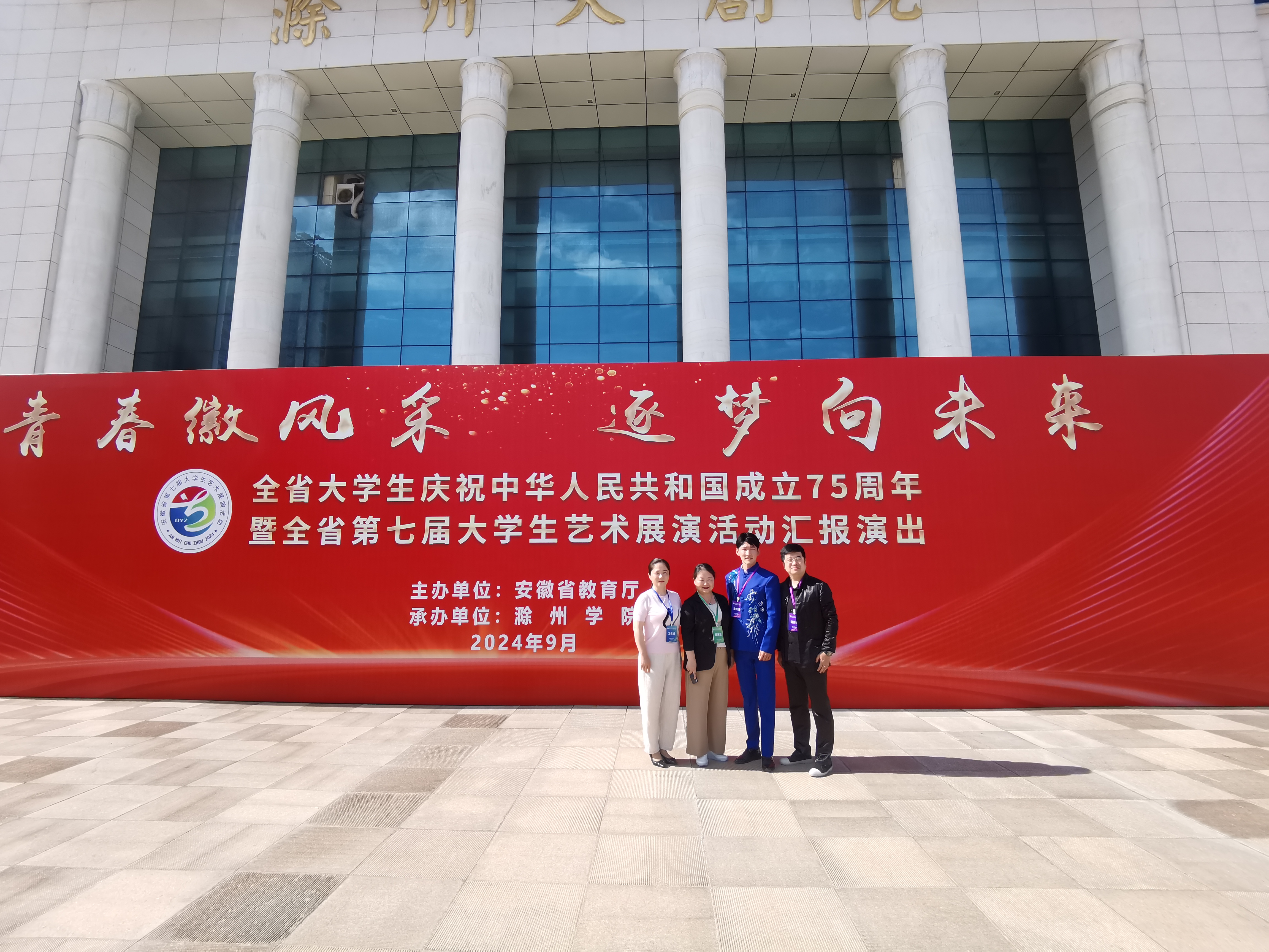 9月25日下午,由安徽省教育厅主办、滁州学院承办的“青春徽风采 逐梦向未来”全省大学生庆祝中华人民共和国成立75周年暨全省第七届大学生艺术展演活动汇报演出在滁州大剧院举办。校团委、音乐学院选送的声乐作品《山歌唱出好兆头》受邀参加演出。