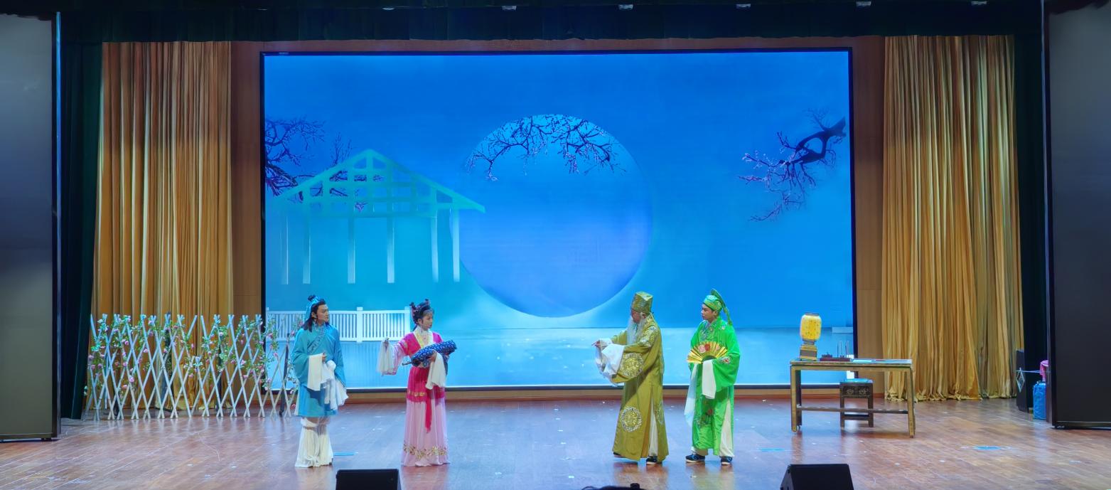 本次上演的黄梅戏大型剧目青春版《天仙配》是我校2023年度校内文艺作品资助立项作品,在传承经典的基础上,学校细致打磨,竭力呈现了一场耳目一新的视听盛宴,展示出学校学科建设高质量发展与非遗文化传承与创新的丰硕成果。