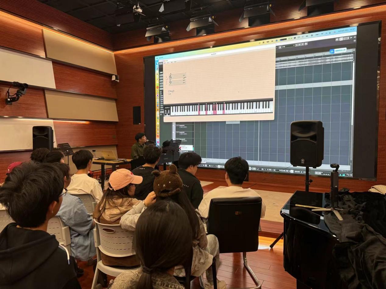 音乐制作第二课堂课程由艺术创新与实践中心徐向已明老师主讲,涵盖音频编辑、流行音乐作曲与编曲、混音技术等多个内容。学生不仅在课堂学习理论课,还将在录音室中,亲身体验音乐制作从构思到成品的全过程。