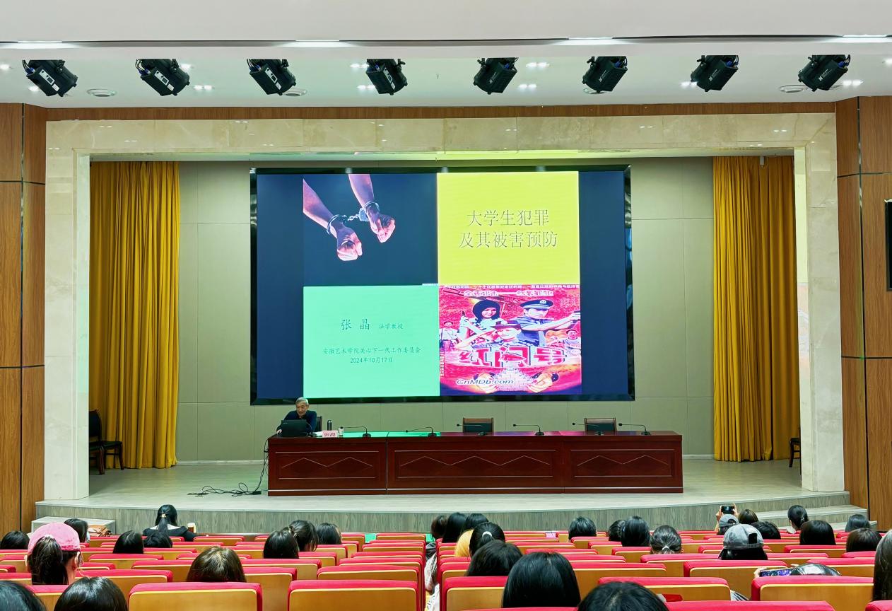 10月17日下午,校关工委委员、美育与高等艺术教育研究所所长张晶教授为师生作艺馨大讲堂《大学生犯罪及其被害预防》法治教育专题讲座。