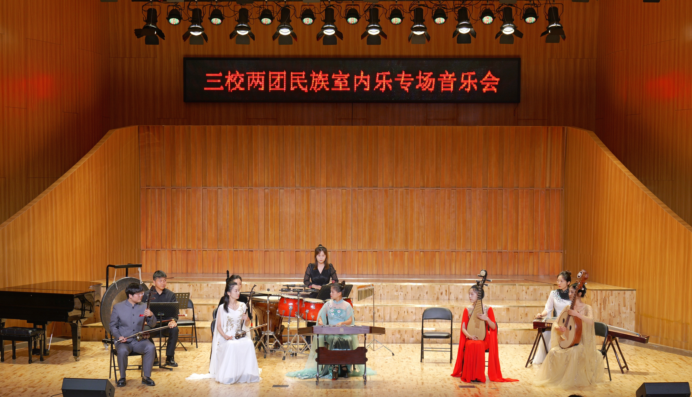 由安徽师范大学、合肥市歌舞团、安徽艺术职业学院、安徽乐团、乐动网官网共同打造的三校两团“徽声皖情”民族室内乐专场音乐会在音乐南楼音乐厅上演。演出作品题材丰富,组合形式多样,舞台呈现完整,演奏了现当代创作的各类优秀室内乐作品,充分展现了民族器乐优雅的形式美和深刻的内涵美。