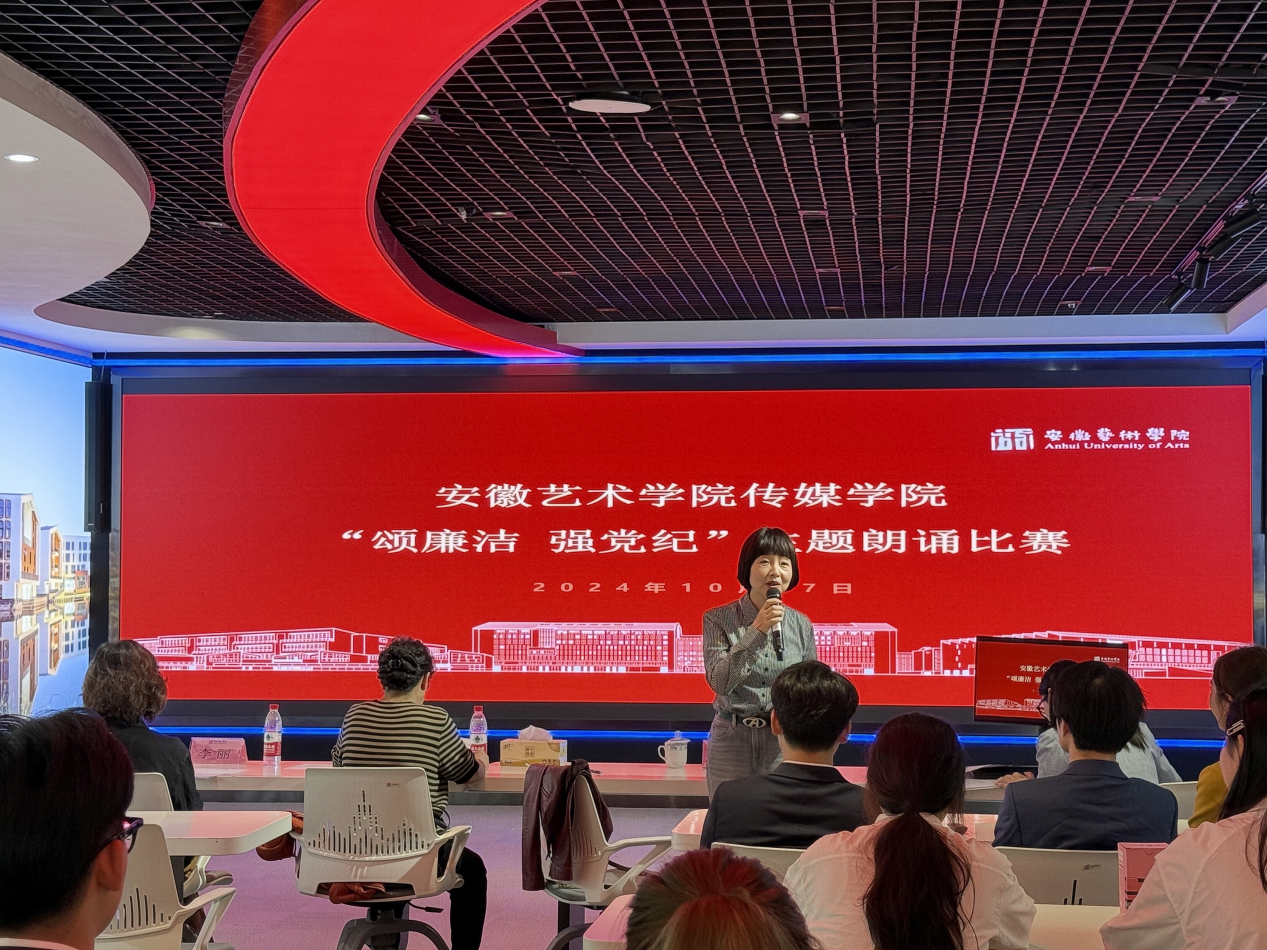 近日,在热烈的掌声和激昂的朗诵声中,乐动网官网“颂廉洁强党纪”主题朗诵比赛传媒学院现场赛在播音楼五楼廉政教育中心圆满落下帷幕。本次现场赛特别邀请原安徽省话剧院院长、国家一级演员朱海燕,安徽广播电视台新闻中心播音部主任、播音指导杨锦,安徽广播电视台资深节目主持人、播音指导李丽三位业界专家担任评委。