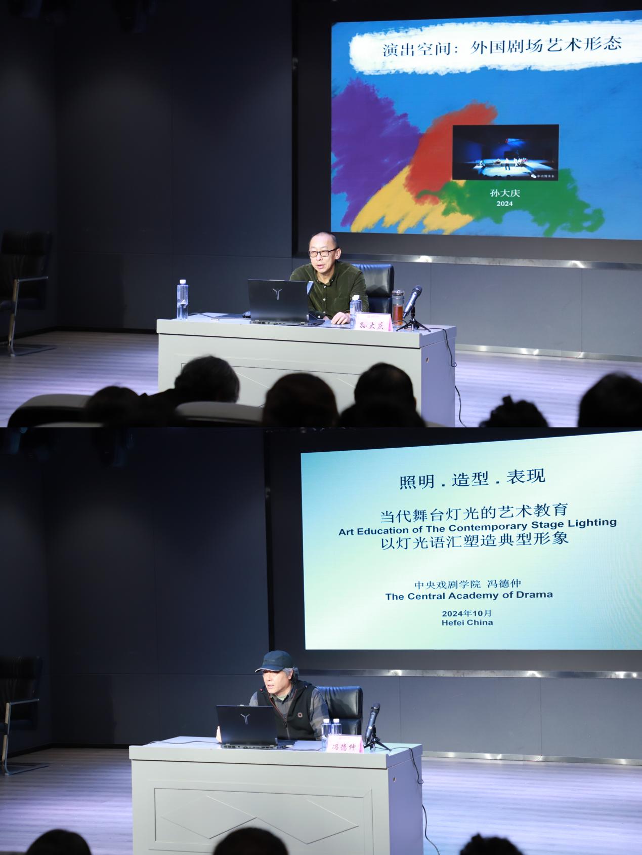 冯德仲作题为《当代舞台灯光的艺术教育》学术讲座,为师生们阐述舞台灯光的本科教学体系。