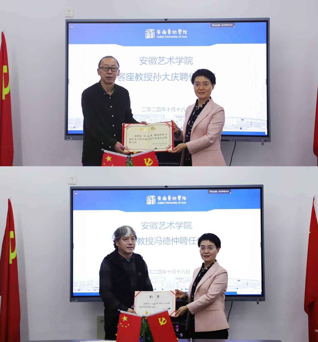 日前,“艺馨人才沙龙”第十九期暨第四期“艺馨讲坛”开讲,特邀中央戏剧学院党委常委、副院长、中央戏剧学院学术委员会主任、博士生导师孙大庆教授,中央戏剧学院舞台美术系教授、中国照明学会舞台灯光专业委员会顾问、博士生导师冯德仲教授开展“戏剧影视美术设计专业建设”主题系列讲座。期间,校党委书记韩军为孙大庆、冯德仲颁发客座教授聘书和戏剧学院学术委员会聘书。