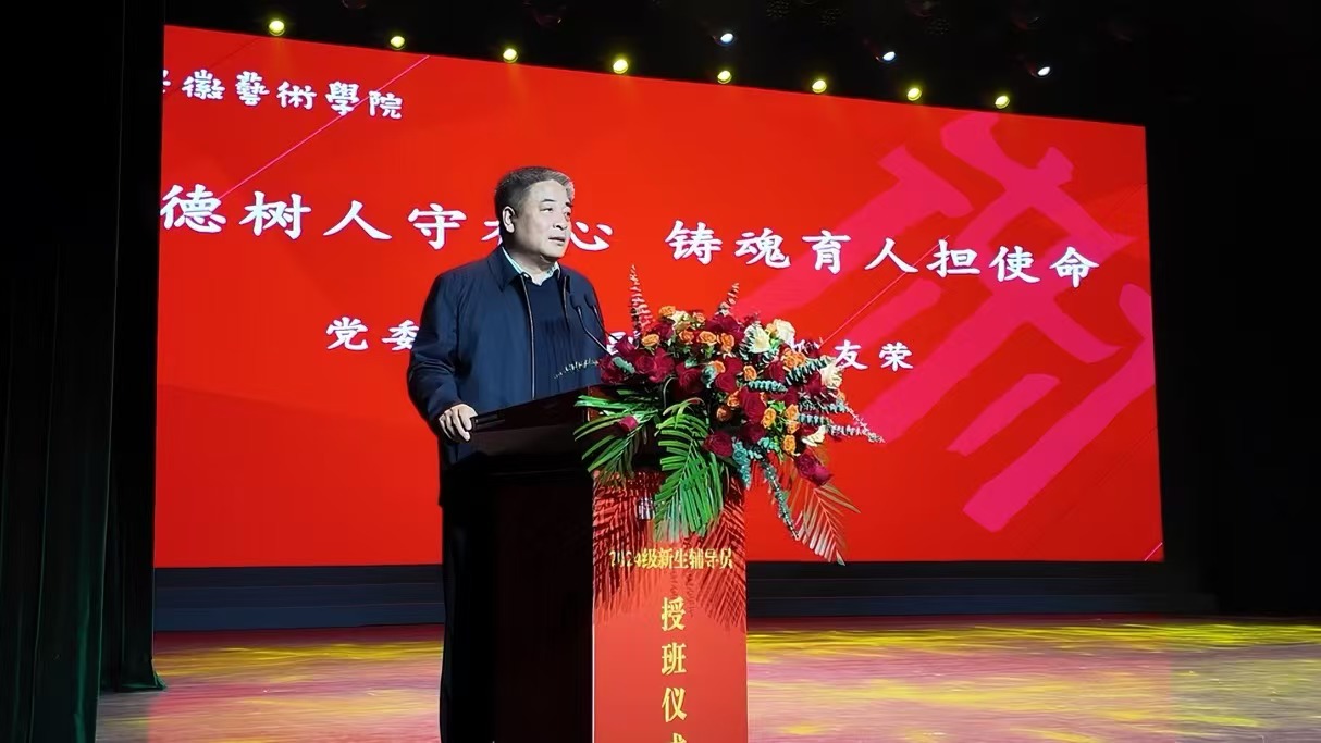 郑健在致辞中表示,艺术与思政教育相辅相成,鼓励新生坚定艺术追求、勇于创新,同时期望辅导员深入学生工作,引导新生健康成长,共同培养具有社会责任感的优秀艺术家。