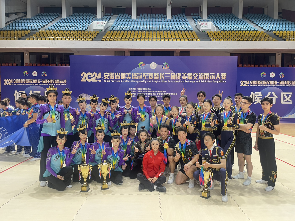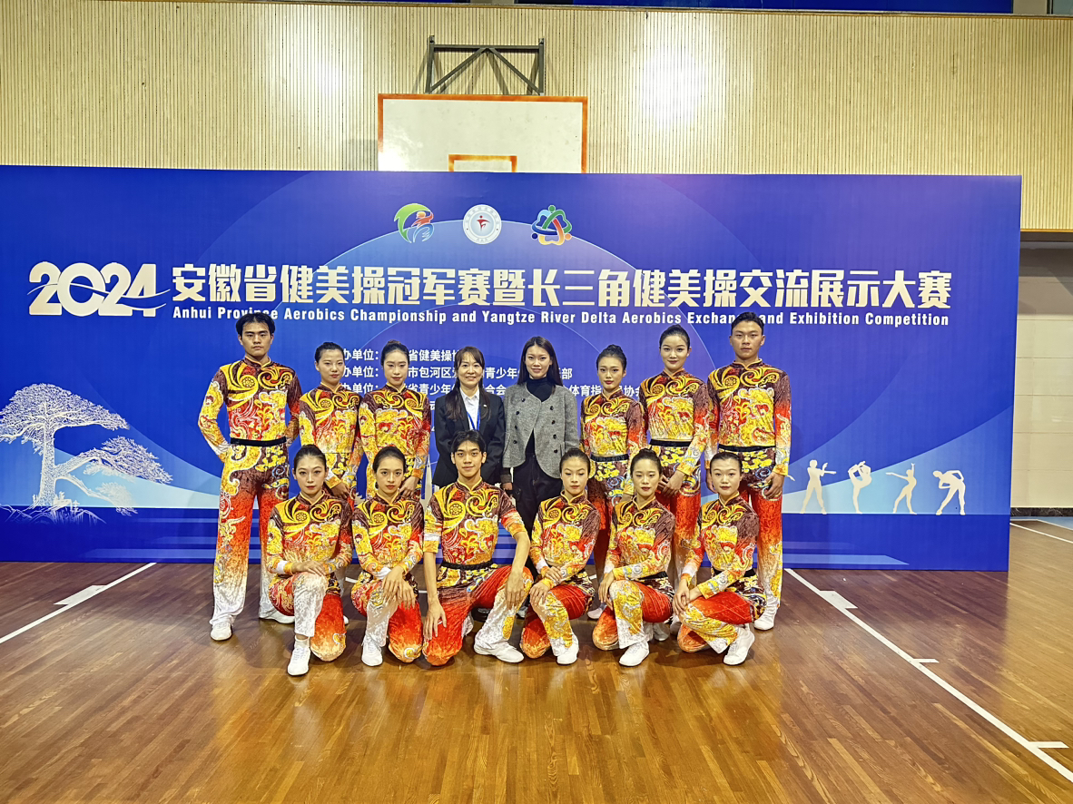 我校潘淑婷、平航旭等十五名学生夺得民族健身操规定动作(成年组)冠军;在民族健身操自选动作(成年组)比赛中,根据我校原创曲目《楚王花鼓》创编的民族健身操融合安徽楚地文化浓郁特色、鲜明地域特点的花鼓灯典型动作和健身操步伐,刚柔并举,引发全场关注,拿下了该项目的冠军。