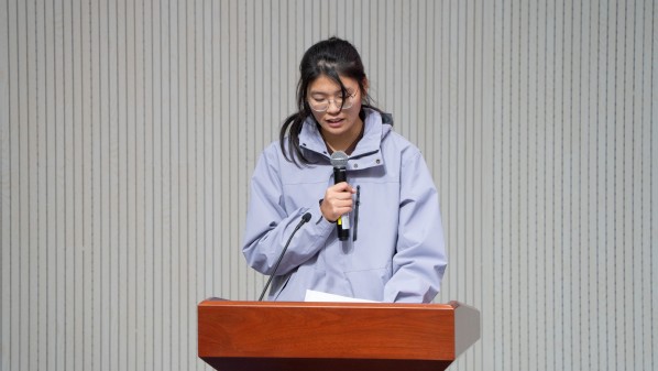 传媒学院2023级新闻学专业学生陈如玉代表优秀运动员发言。陈如玉在本次校运会中打破学校400米、跳高的历史记录,取得了三金一银的好成绩。她回顾了自己与体育结缘的故事,阐述了拼搏精神和团队意识的意义所在。与会人员通过视频重温了师生运动员参赛的精彩瞬间。