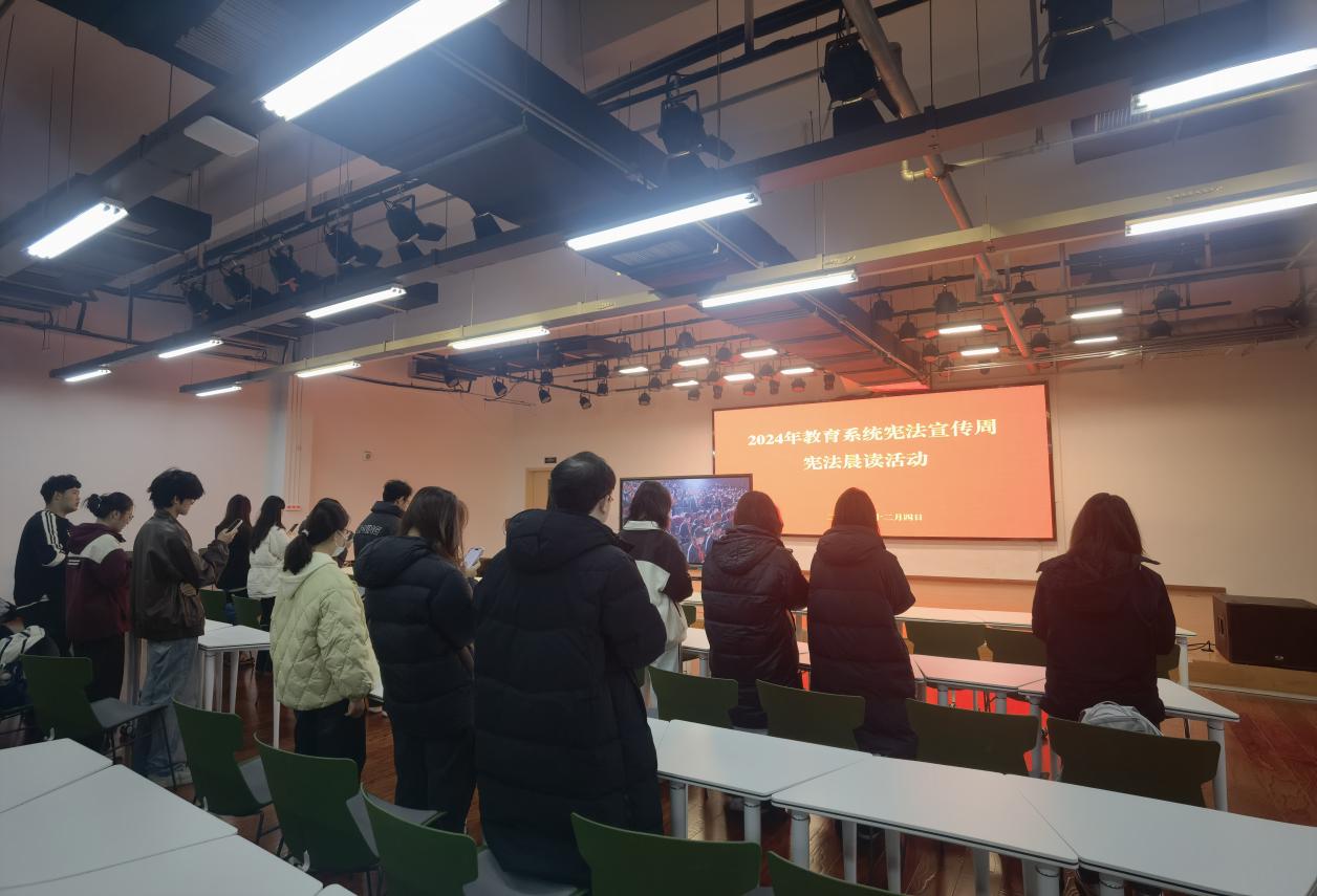 为深入学习贯彻党的二十大、二十届三中全会和全国教育大会精神,加强法治教育,积极推广宪法知识学习与宣传,继承并发扬宪法精神,培养学生崇尚宪法、遵守宪法、维护宪法权威的意识。12月4日上午,校团委组织学生骨干在大学生活动中心,通过全国青少年普法网集中参加国家宪法日教育系统“宪法晨读”活动。