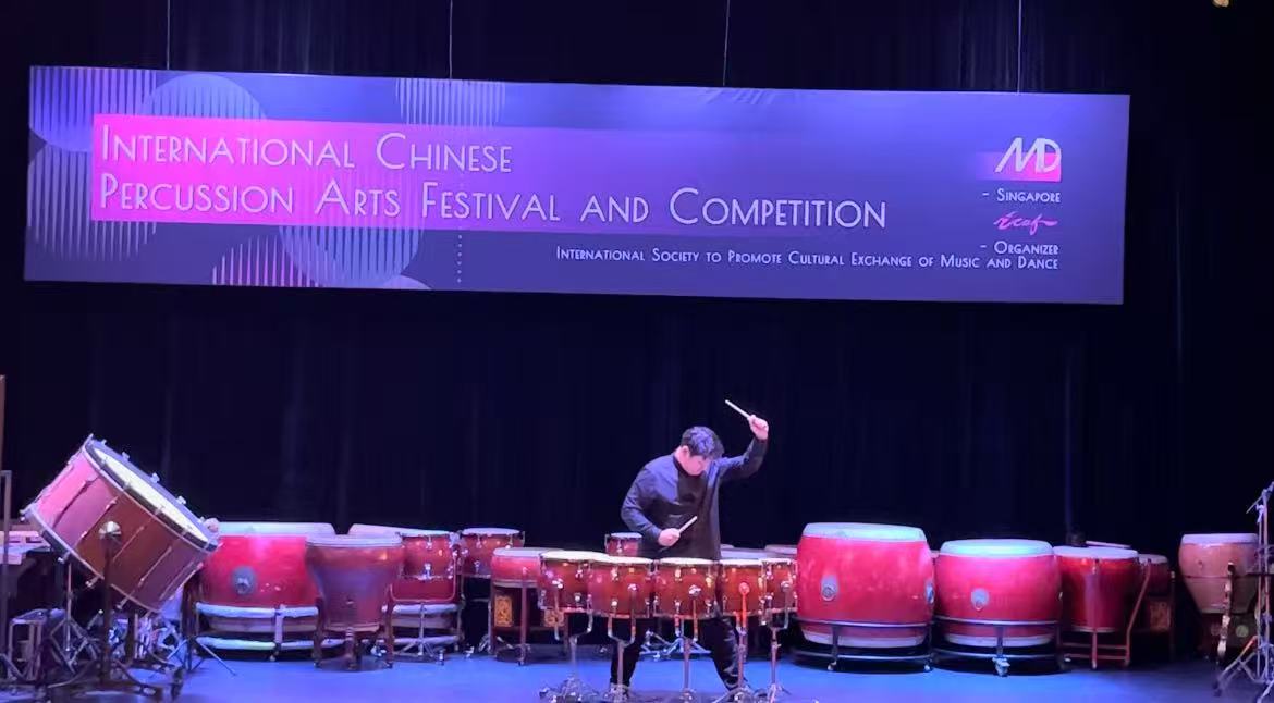 近日,在新加坡举办的“2025国际华人打击乐艺术节”圆满落幕。我校打击乐专业学生钱桢烨在此次艺术节中表现出色,荣获民族打击乐专业青年组“优秀奖”和西洋打击乐专业青年组“铜奖”。我院青年教师陈懿凡获评“优秀指导教师”。