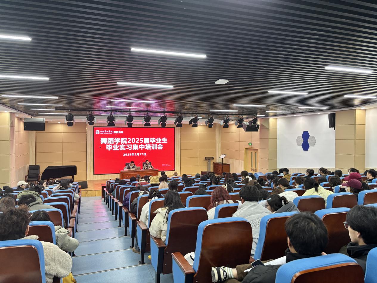 2月17日上午,舞蹈学院在音乐楼报告厅召开2025届毕业生毕业实习集中培训会,学院副院长李玉煜、教科研办公室负责人、毕业班专业班主任和2025届全体毕业生参加会议。