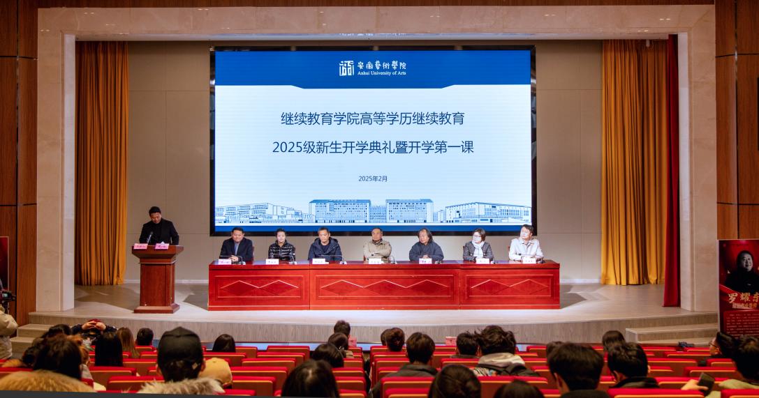 2月23日下午,我校高等学历继续教育2025级新生报到工作有序开展,开学典礼暨“开学第一课”顺利举办。我校高等学历继续教育表演专业导师周爱宝教授、绘画专业导师罗耀东教授、视觉传达设计专业导师撒后余副院长(副教授)、舞蹈表演专业导师李玉煜副院长(副教授)、播音与主持艺术专业导师马宏副院长(主任播音员)、音乐表演专业旅俄男中音专业教师朱临吉博士、继续教育学院院长陈明及全体教职工、新生代表百余人参会。开学典礼由继续教育学院副院长阚侃主持,并进行了线上直播。