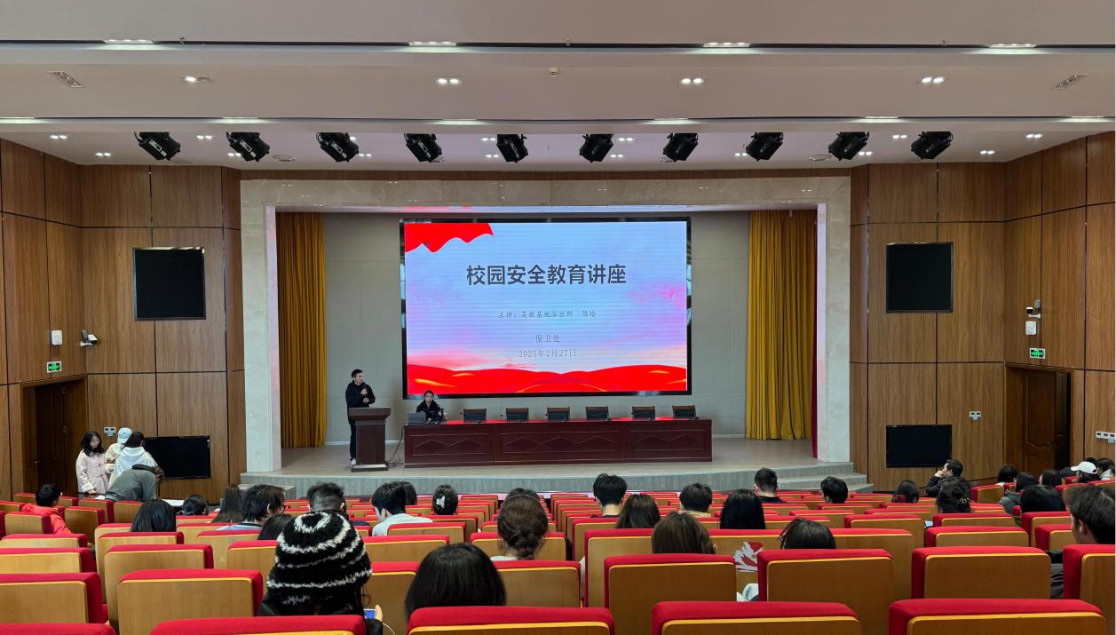 2月27日下午,安全管理处邀请新站区高教基地派出所警官陈晗为我校师生开展校园安全教育讲座。