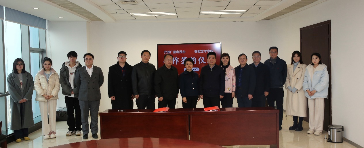 2月28日下午,我校与安徽广播电视台共建实习与就业基地签约仪式在安徽广播电视台顺利举行。这是2021年校媒全面战略合作伙伴关系框架协议签署后,双方的再次延伸合作。校党委书记韩军,安徽广播电视台党委书记、台长、总编辑吴文胜出席仪式。