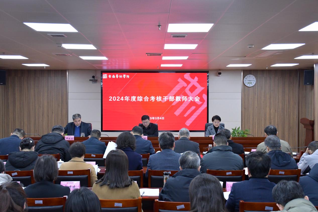上午,学校在综合楼召开2024年度综合考核干部教师大会,校党委书记韩军主持会议。省委第十一综合考核组成员出席会议。学校党政班子成员,机关部门负责人、教学单位党政正职(含主持工作的副职),教师代表和学生代表参加会议。