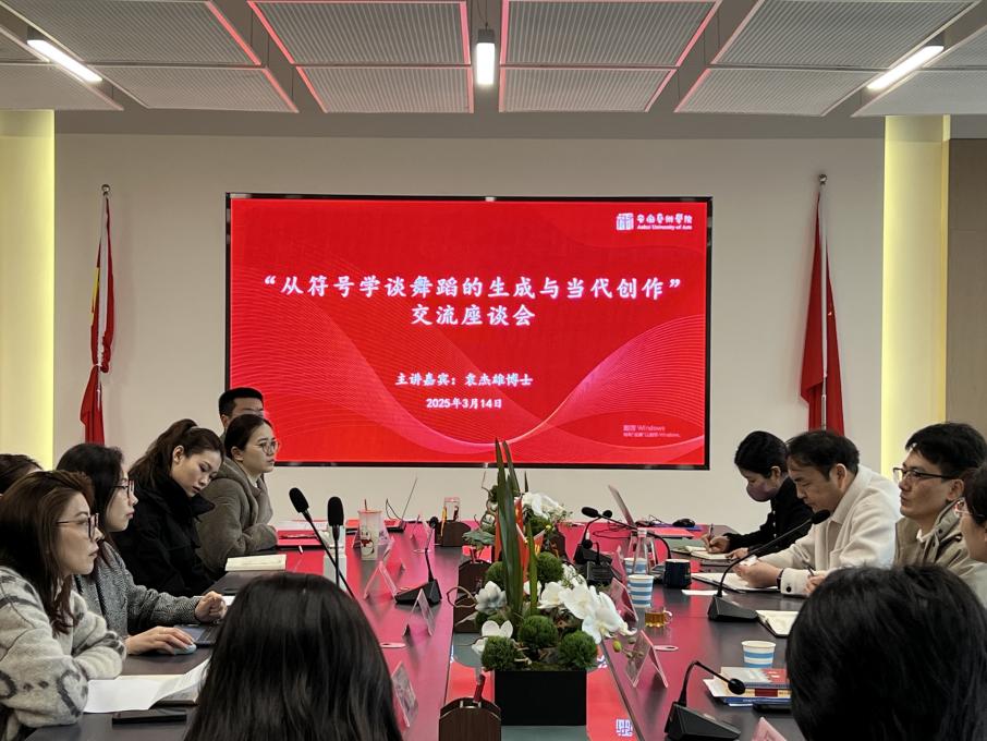 在上午的交流座谈环节,袁杰雄以“从符号学谈舞蹈的生成与当代创作”为主题与舞蹈学院专任教师进行了深入交流。