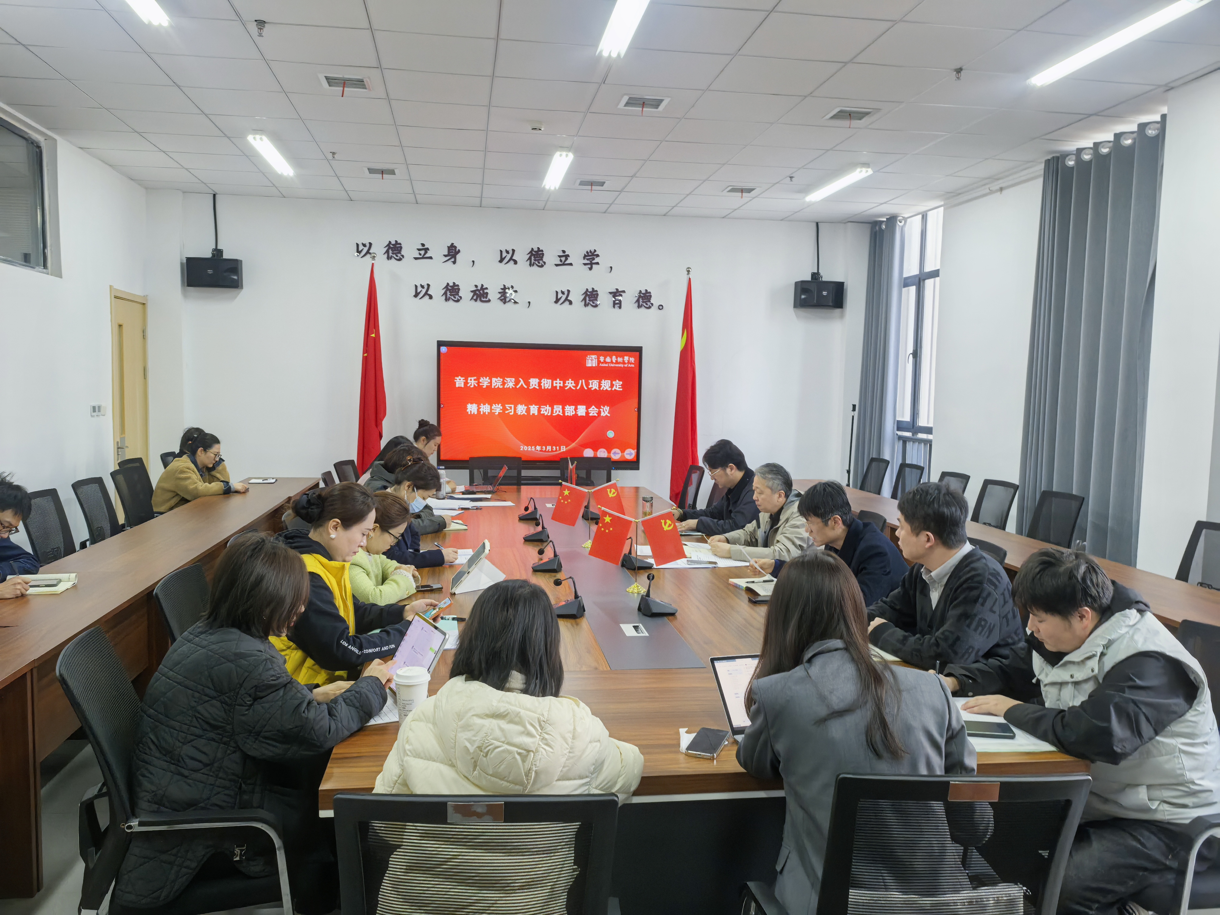 为全面落实党中央关于在全党开展深入贯彻中央八项规定精神学习教育的决策部署,3月31日上午,音乐学院党总支召开专题会议,传达学习中央精神,动员部署学院学习教育工作。会议由音乐学院党总支书记李伟主持,党总支委员、各党支部书记、各教研室主任等参加会议。