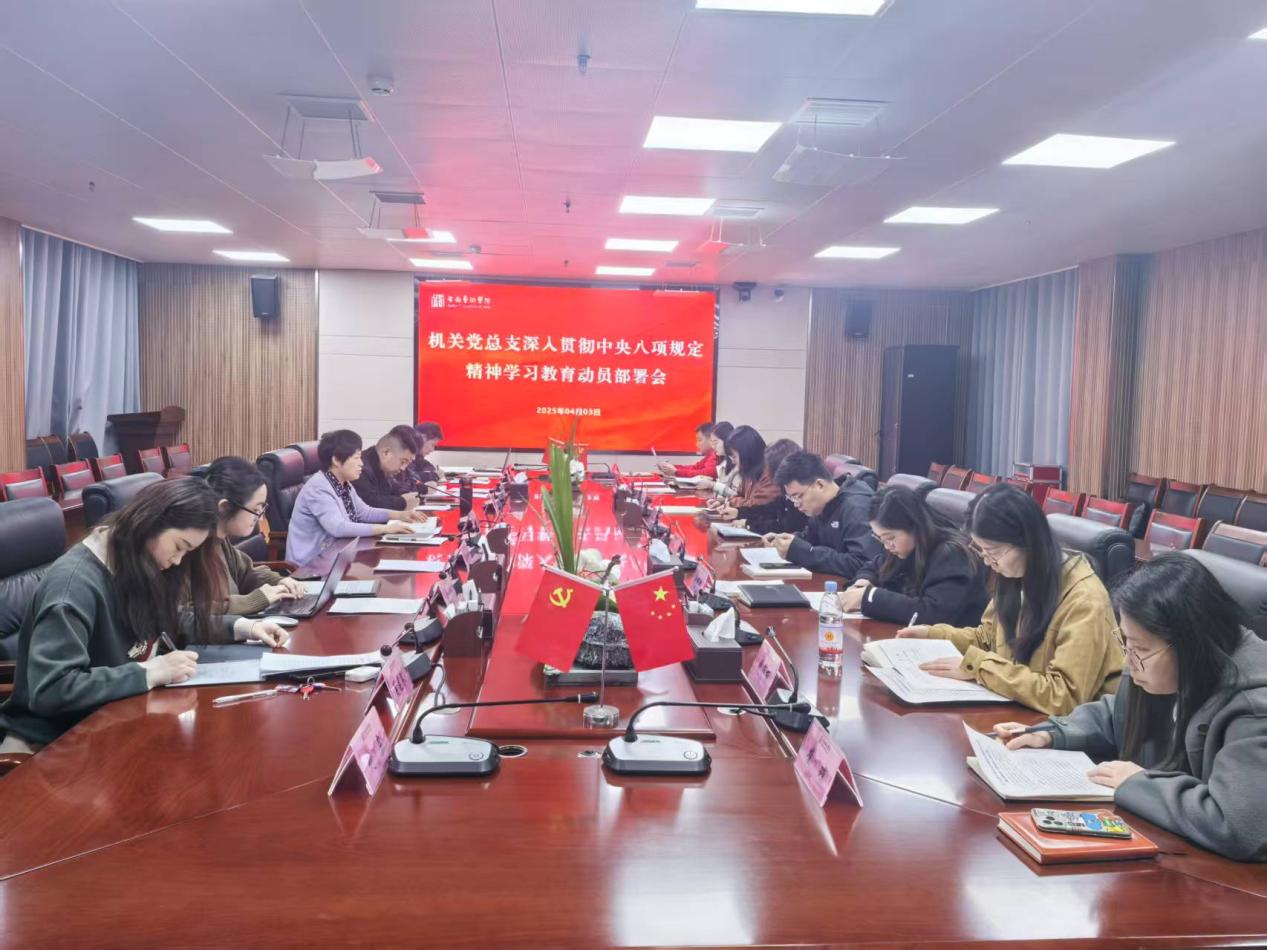 会议指出,在全党开展深入贯彻中央八项规定精神学习教育,是以习近平同志为核心的党中央作出的重大决策,是今年党建工作的一项重点任务。要自觉把思想和行动统一到党中央决策部署和省委要求上来,按照学校党委部署,扎实开展好机关各部门学习教育,切实以更高标准、更严要求推进中央八项规定精神落地见效,为学校高质量发展提供坚强保障。