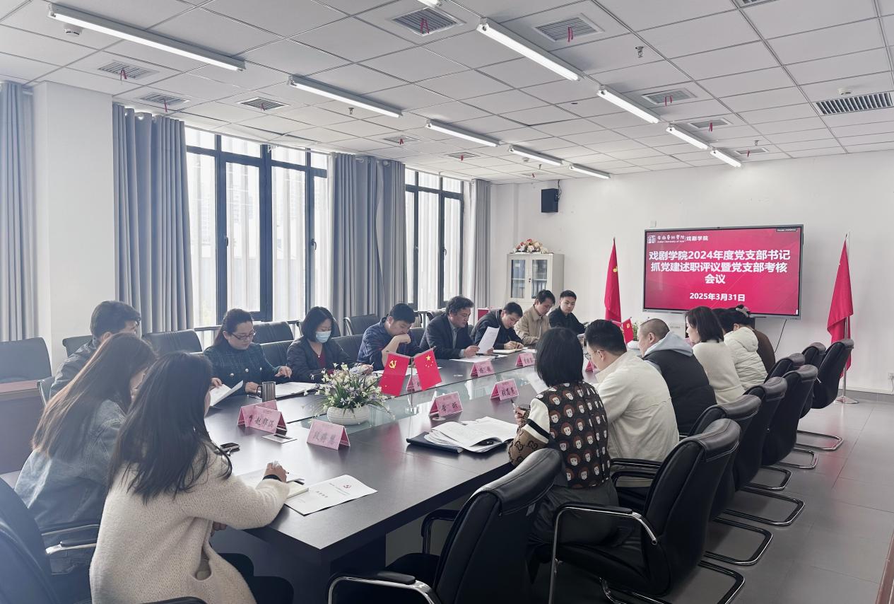 近日,戏剧学院召开2024年度党支部书记抓基层党建述职评议会,校党委委员、人事处处长、戏剧学院党总支书记曹晓富主持会议,戏剧学院党总支班子成员,各党支部书记、副书记,“两代表一委员”,民主党派代表,基层师生党员代表参加会议。
