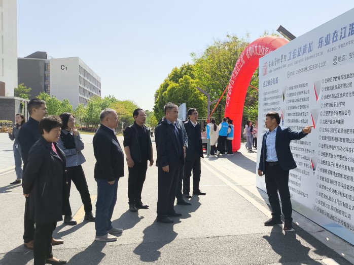 招聘会在崇德楼门前广场启动。校党委副书记、校长柳友荣,党委副书记陈文兵,党委委员、纪委书记、监察专员程宗林,省教科文卫体工会二级调研员郑卫民,工会副主席、三级调研员黄冰玉,新站高新区总工会副主席梁华友,以及部分兄弟高校同行莅临指导,详细了解企业招聘需求和毕业生求职进展。