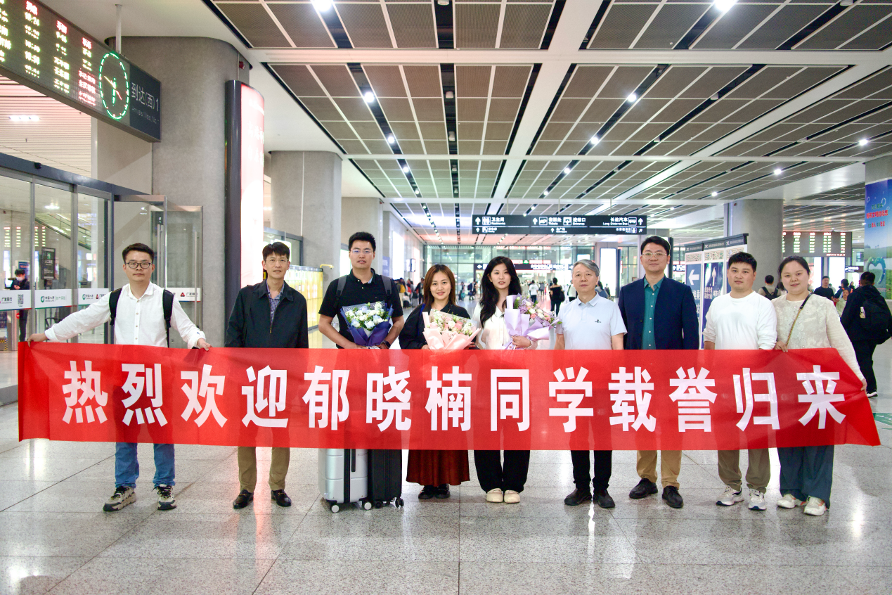 喜讯传来,学院高度重视。学院党总支书记、院长李伟率领导班子成员及辅导员团队,前往合肥南站迎接郁晓楠同学返校。在迎接仪式上,李伟代表学院向郁晓楠献花并致辞,充分肯定其在赛事中展现出的“以坚定信念攻坚克难、以科学规划彰显青春价值”的奋斗精神,赞扬她为全院学生树立了优秀榜样。