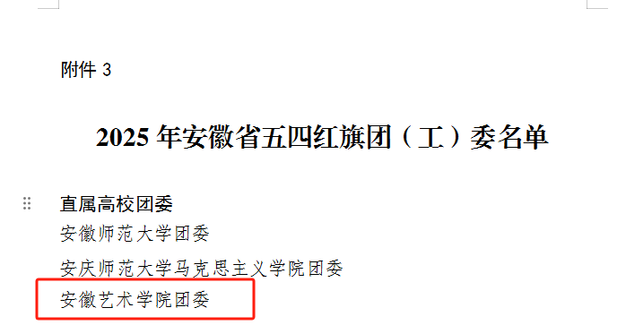 近日,共青团安徽省委印发《关于表彰2025年安徽青年五四奖章、安徽省新时代青年先锋和安徽省“两红两优”的决定》,我校团委凭借扎实的工作成效与创新实践,荣获“安徽省五四红旗团委”称号,这是我校首次获此殊荣。