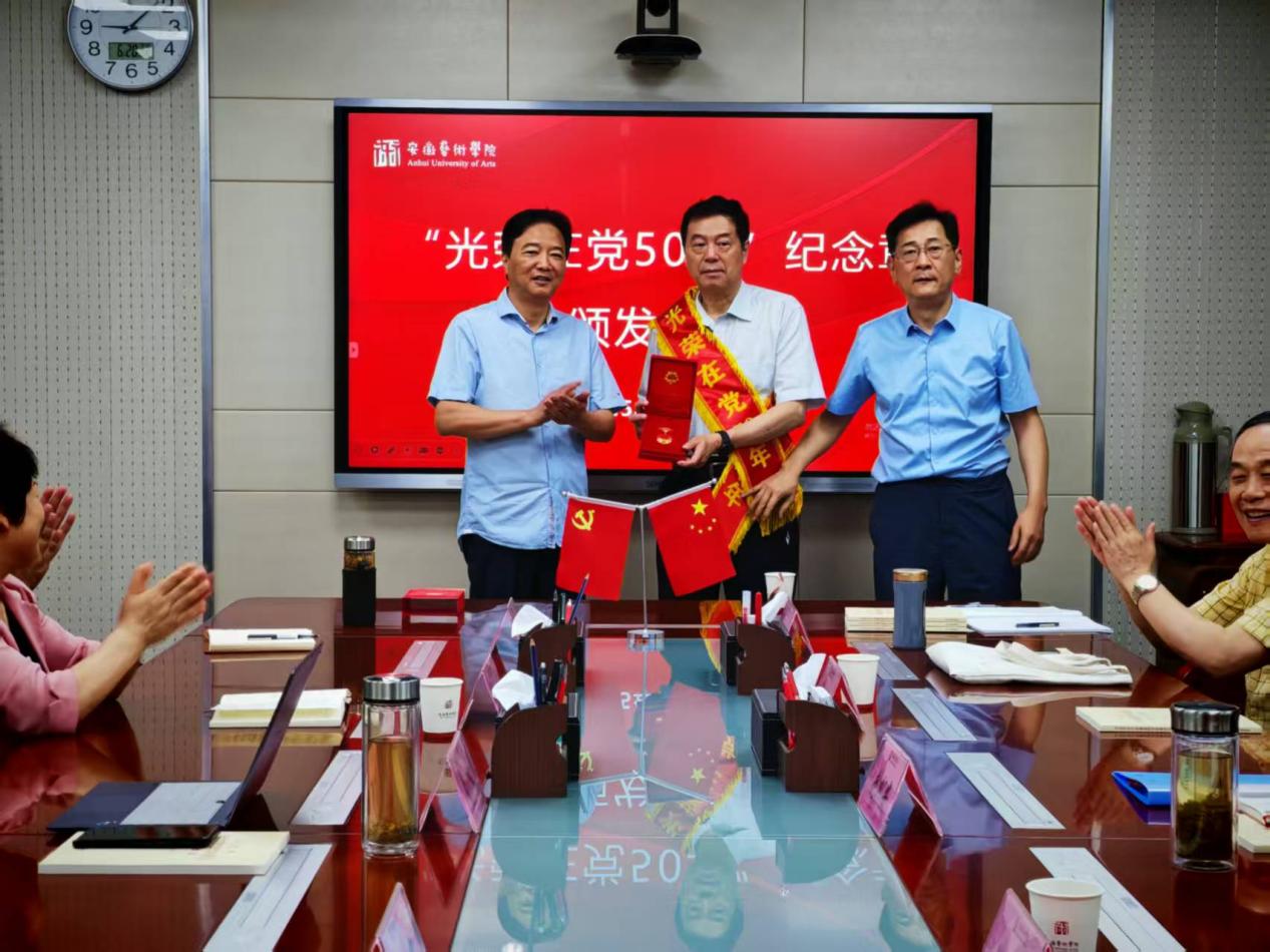 6月20日上午,学校举行“光荣在党50年”纪念章颁发仪式,向党龄满50周年、为教育事业作出贡献的老党员致敬。