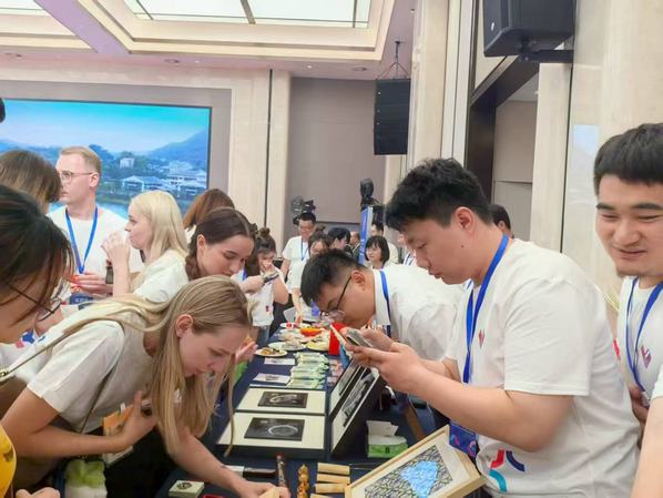我校师生圆满完成了安徽代表团在开幕式、闭幕式的中俄文艺汇演任务,充分展示了安徽民歌和传统戏曲的艺术魅力。在“中国日”主题活动中,我校非遗专业师生向出席嘉宾详细介绍了庐州折扇、徽州竹雕竹编、传统漆艺等非遗文化,用竹编技艺与俄罗斯青年互织友谊,并挑选出竹编画作和大漆工艺品作为安徽代表团的礼物赠予俄罗斯总统驻伏尔加河沿岸联邦区副全权代表马什科夫采夫先生,为本次活动中安徽代表团的文化交流工作做出了重要贡献。