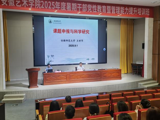 9月1日,举办了第31期、32期艺馨人才沙龙活动。邀请安徽师范大学历史学二级教授、博士生导师、国务院政府特殊津贴专家、国家社科基金项目会评专家王世华作《课题申报与科学研究》专题报告。柳友荣作《青年教师的专业发展》专题报告。