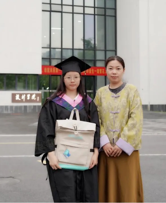 “本以为我的大学生涯会以这样仓促的方式落幕了,但是没想到张书佳老师却为我的大学生涯画上了圆满的句号。张老师特地在我工作之余,邀请我回到学校,不仅送给我她亲手设计的杜邦纸书包,还专门为我借来了学士服,让我弥补了毕业典礼未曾拨穗的遗憾。这份毕业礼物,让我感受到了被学校、老师牵挂、祝福的感觉。”在说起这句话时,杜家宜的脸上洋溢着止不住的感动与幸福。她轻轻拍了拍怀里的书包,笑道:“以后它每天会陪伴我通勤,就像带着老师的那份期许和祝福,让我感受到未来前行的动力。”