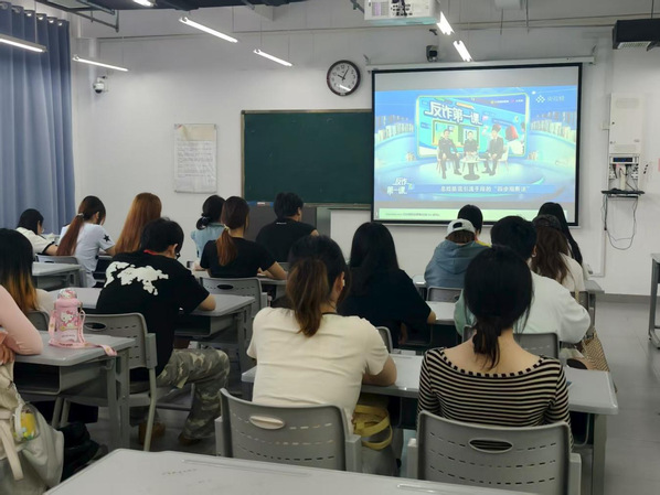 传媒学院自开学以来,各班辅导员通过班级群、主题班会和面对面交流等多种形式,持续开展高频次防诈宣传,结合真实案例解析诈骗形式与危害,并于9月18日晚组织学生集体观看“一堂反诈课”。