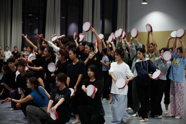 在舞蹈教室里,来自海南的2025级舞蹈表演专业学生王星正和同学们进行每晚两小时的花鼓灯舞蹈训练。“第一次接触安徽花鼓灯,我就被它的魅力征服了。”王星兴奋地说。与她熟悉的中国古典舞风格不同,花鼓灯俏皮、轻盈,需要运用特定的道具和节奏。