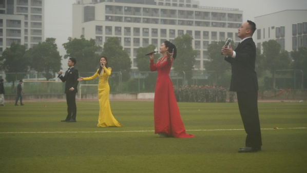 设计学院黄威老师、音乐学院2025级声乐专业欧阳天韵同学,分别代表军训优秀指导员、军训优秀学员讲话。