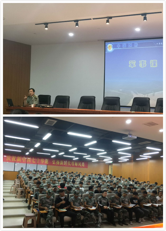 9月27日下午,学院在美术楼报告厅开展国防军事理论专题讲座。安徽省国防教育讲师团讲师、国家国防教育专家库专家、安徽省十佳优秀军事教师曹成书教授应邀为2019年军训学员进行专题讲座。保卫处副处长陈雪峰主持讲座,参训学生按营分三场收听讲座。