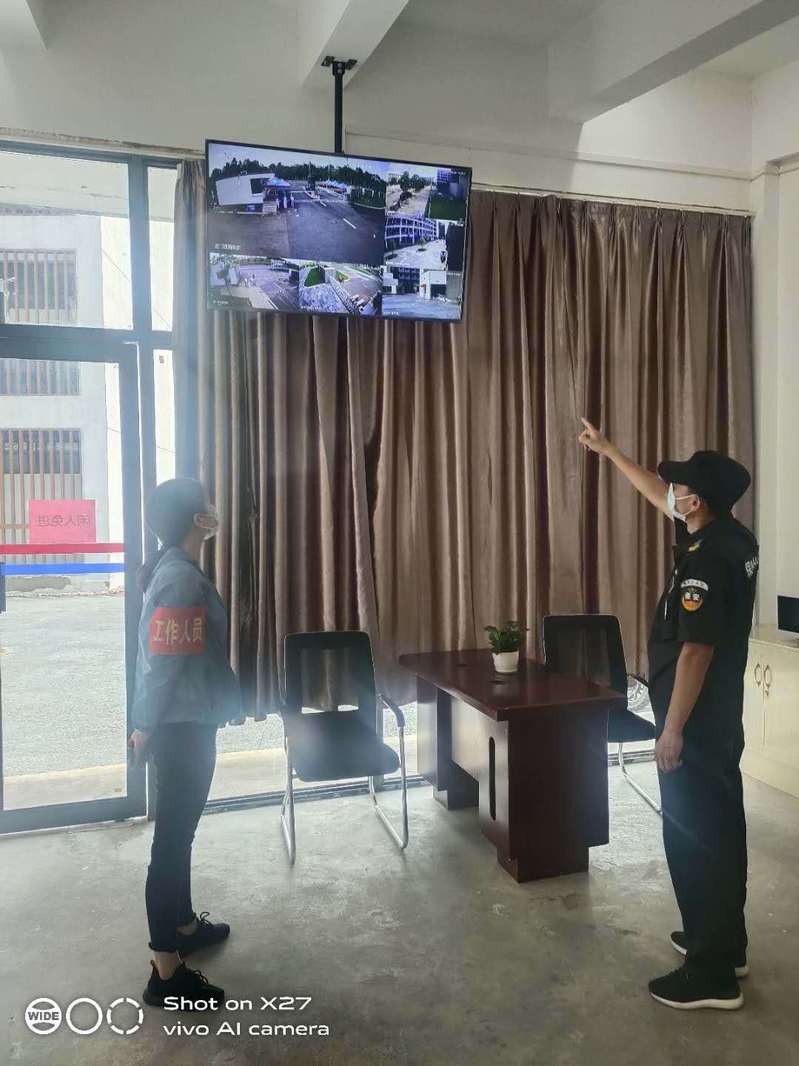 此次检查的内容包括:各门岗防疫工作的落实情况,消防安全管理情况,校内设备设施安全、用电安全情况,工地施工安全情况,治安防范、交通安全管理情况。巡逻的保安队伍延巡逻路线定点巡查了校园的安全情况,安保负责人协同队长通过监控室监控检查了各楼的安全情况,排查校园内的安全隐患。