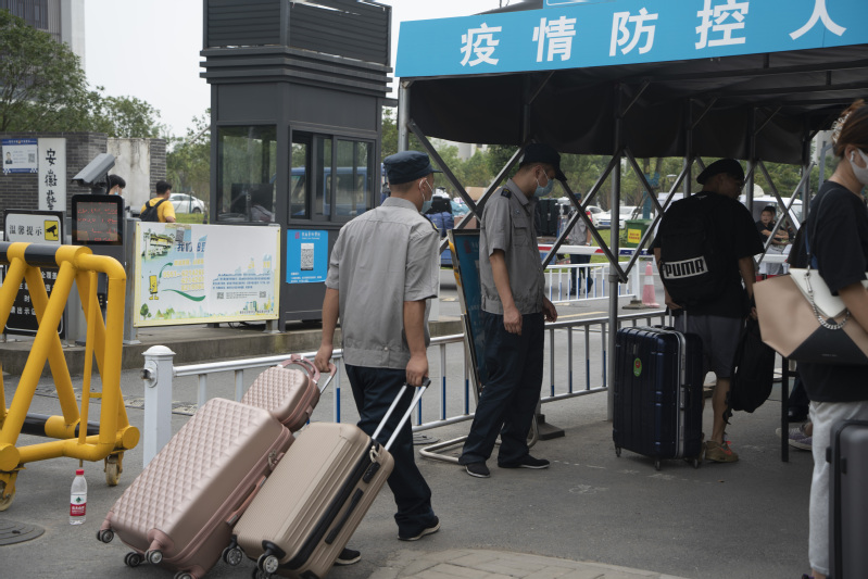 9月4日,我校老生返校报到,由于疫情形势仍然严峻,按照上级要求,学生家长及车辆均不许进入校园。保卫处将疫情防控关口前移,学校依照不同的系部,设计了独立的登记处。辅导员和保安在校门口共同核对身份信息,检查48小时内核算检测报告,引导学生扫安康码、检测体温、更换口罩后,进入校园,为创造安全的学习环境打下坚实的基础。