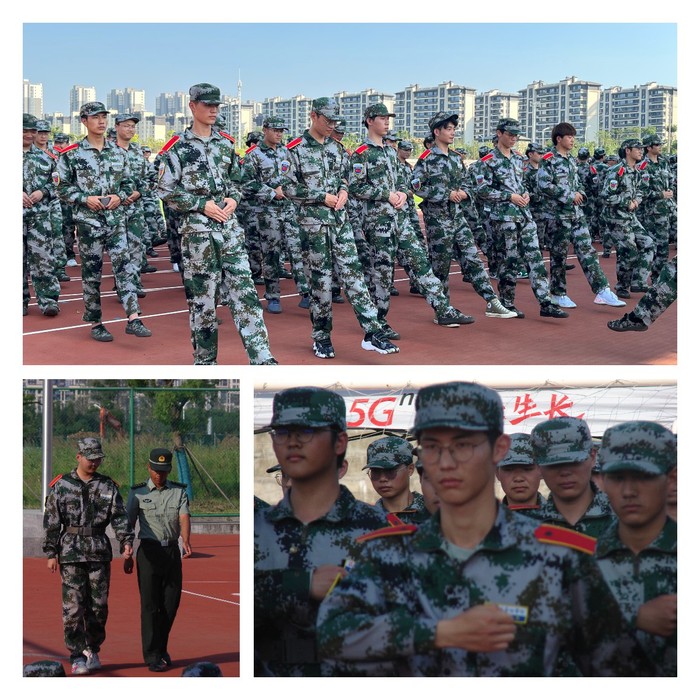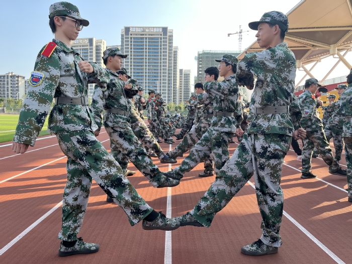 清晨的秋阳在操场洒下第一束金辉,身着整齐迷彩服的新生们在各连教官的带领下,展开了有条不紊的训练进程。他们略显青涩的脸庞不同于初入大学校门之时,当初的迷茫懵懂已化为训练洗礼后的满腔热血。“立正!”口号响起,迷彩青葱们如战士般立得笔挺;“正步——走!”指令下达,抬臂踢腿动作整齐划一;“立定!”口令发出,即刻响起“一、二!”的响亮回应,收臂踏地,脚步铿锵有力。训练教官在旁立如劲松,连日磨炼后的同学们也逐渐透出了军人的干练。