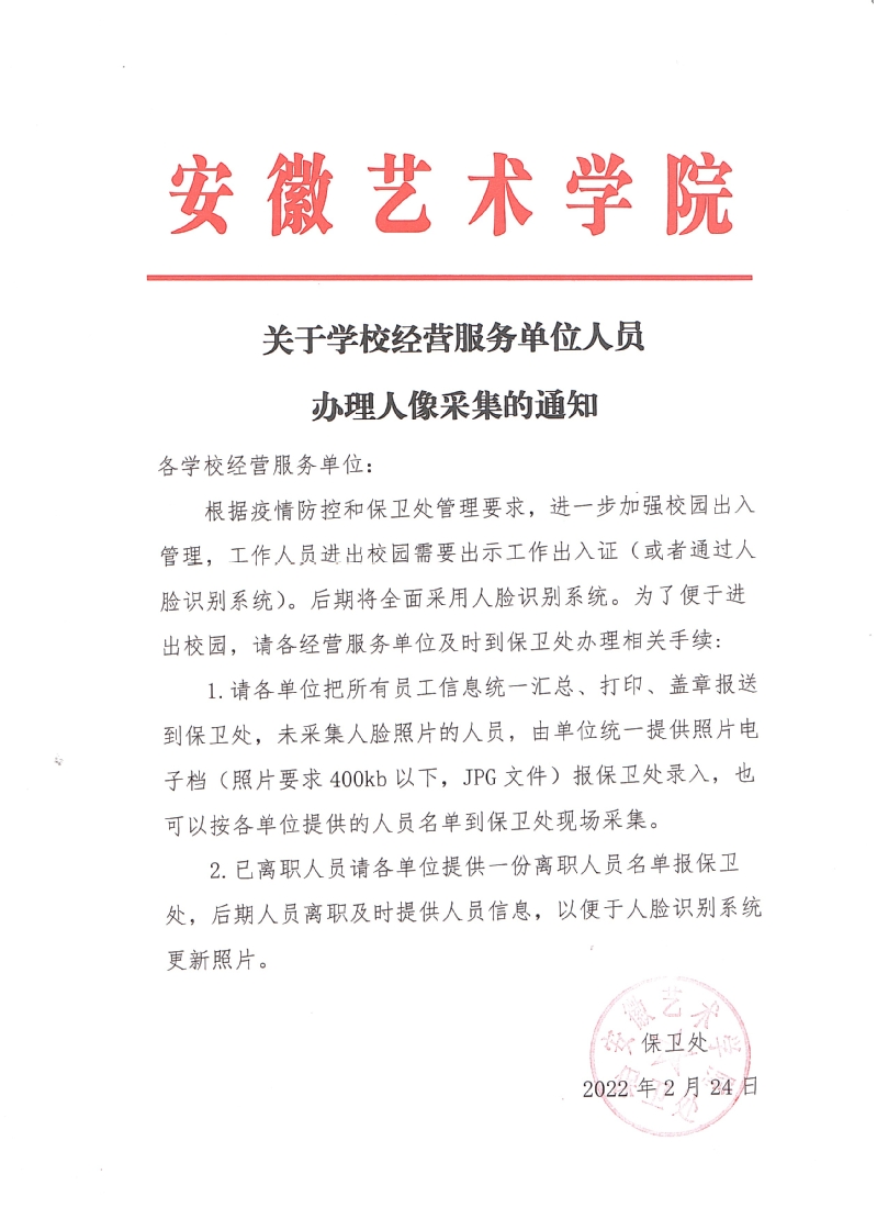 关于学校经营服务单位人员办理人像采集的通知